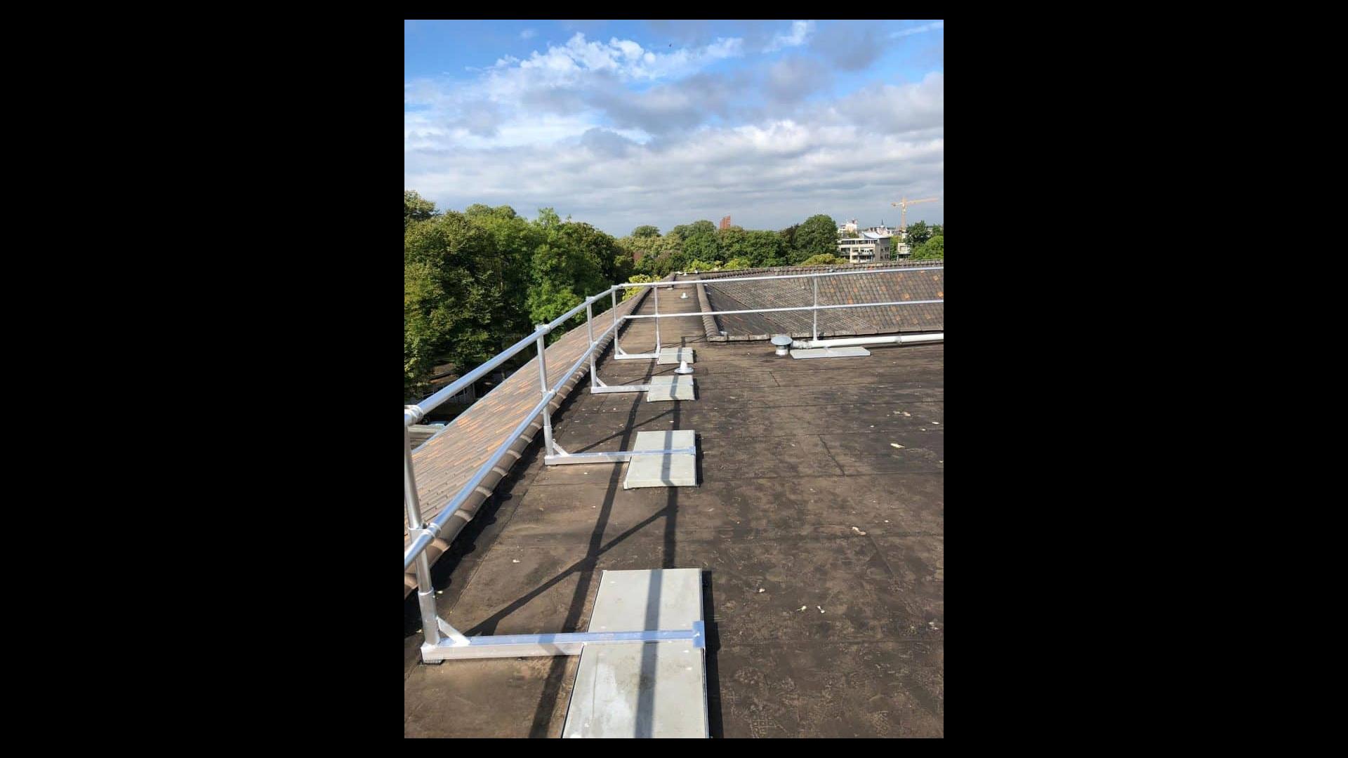 Dakrandbeveiliging op maat laten maken bij Lockhard Benelux biedt een veilige werkomgeving op het dak bij renovatie of bij het plaatsen van zonnepanelen.